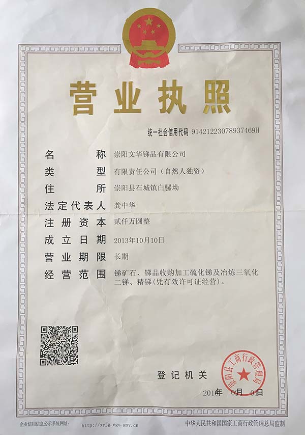 崇陽文華銻品有限公司位于全國化工之鄉(xiāng)湖北省咸寧市崇陽縣,面臨107國道、京珠高速公路,具有得天獨(dú)厚的地理優(yōu)勢(shì),為公司的發(fā)展提供了便利條件。